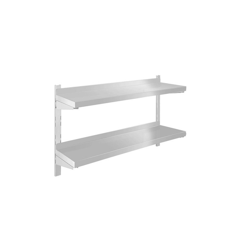 AISI 304 Stainless Steel 2 tier wall shelf designed for commercial kitchens and prep areas.